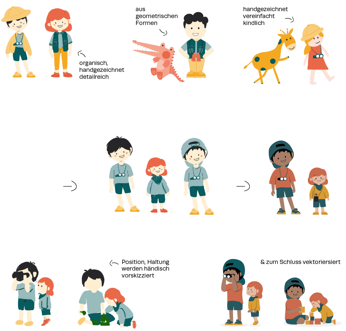 Mit Moodboards bestimmen wir zunächst gemeinsam den passenden Illustrationsstil für deine Marke und Zielgruppe. Danach arbeite ich die einzelne Motive mit ersten Skizzen bis hin zum finalen Design aus. Dabei sind wir stetig im Austausch, um sicherzugehen, dass die Illustrationen in die gewünschte Richtung gehen.